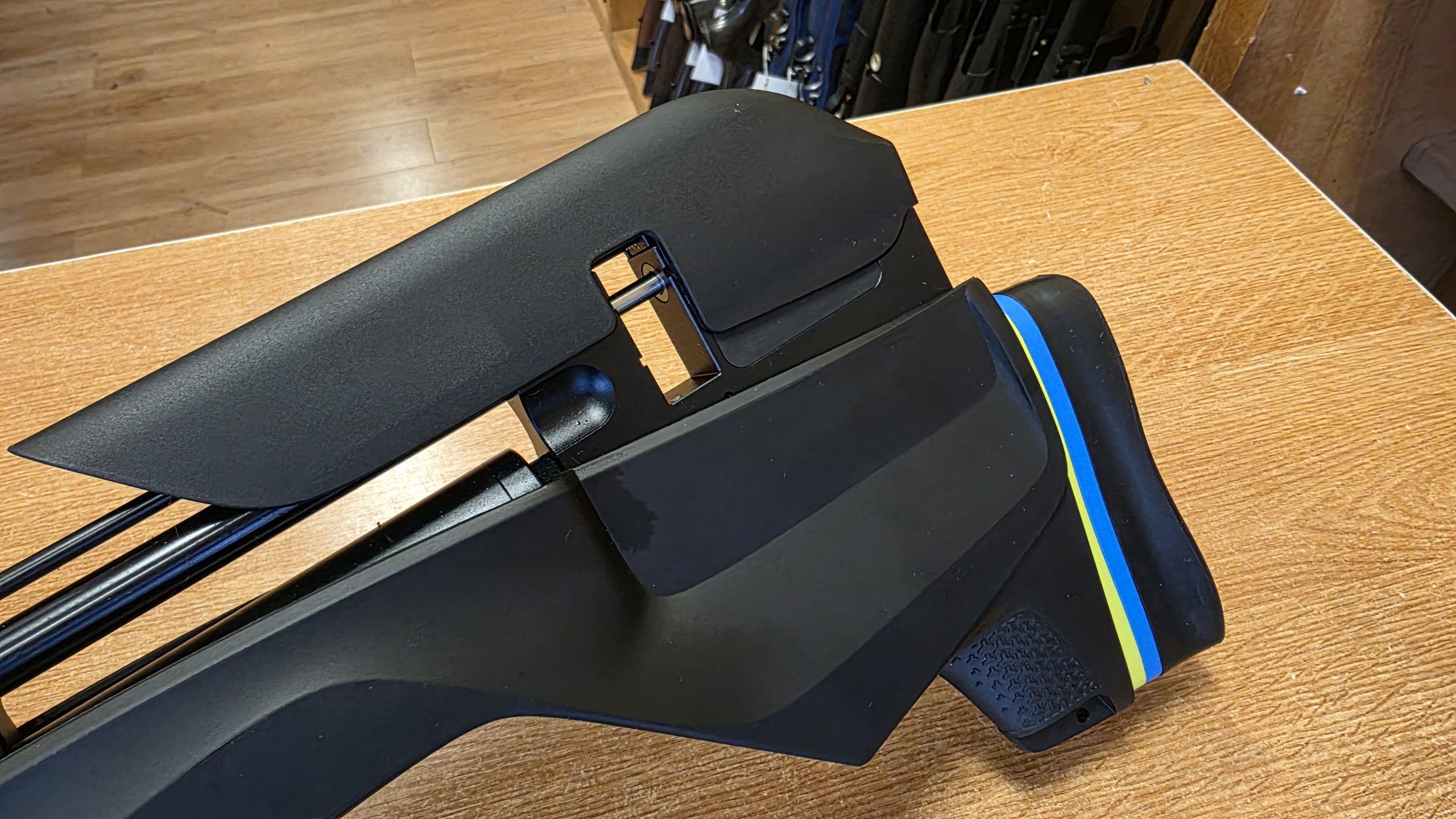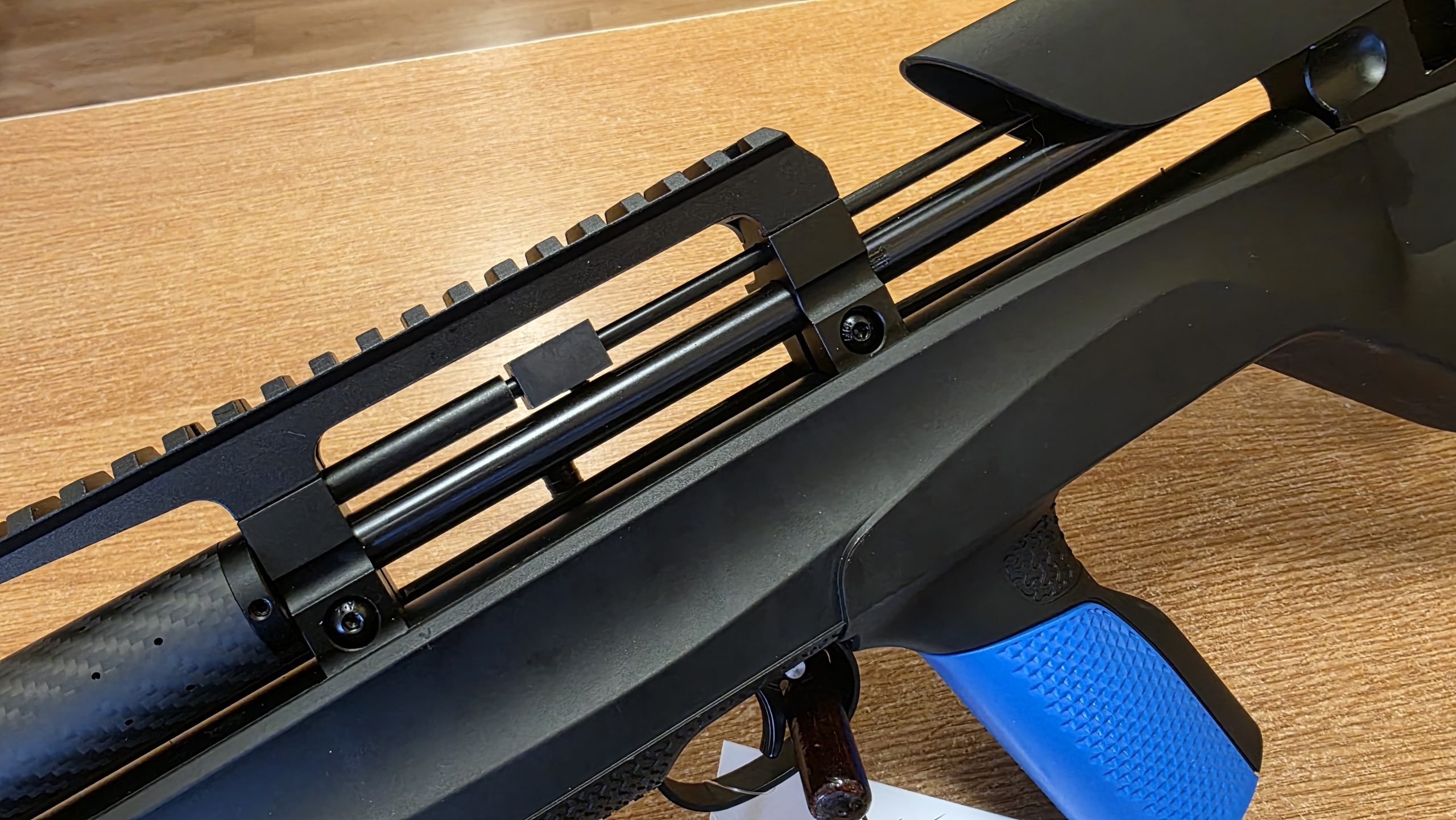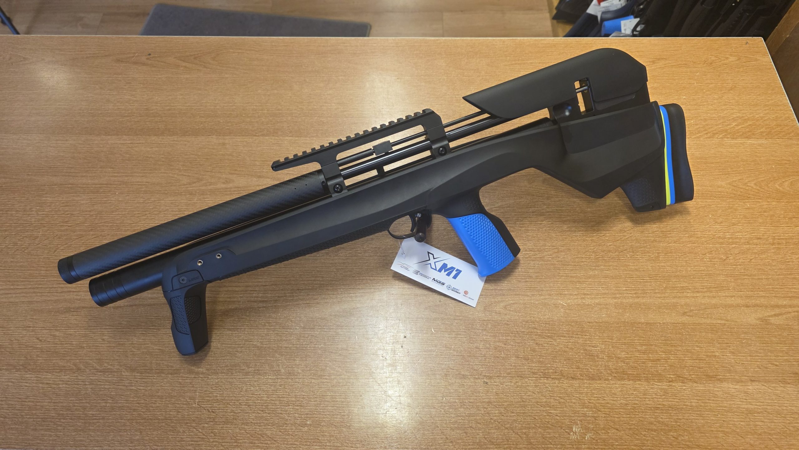 Bahan: Stok sintetik hitam, laras keluli biru