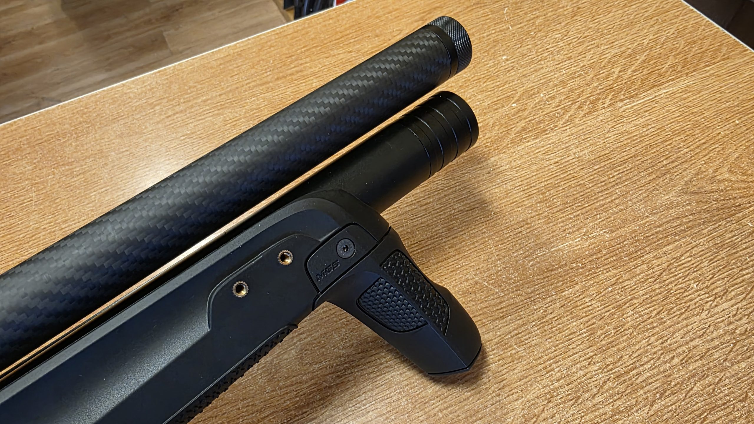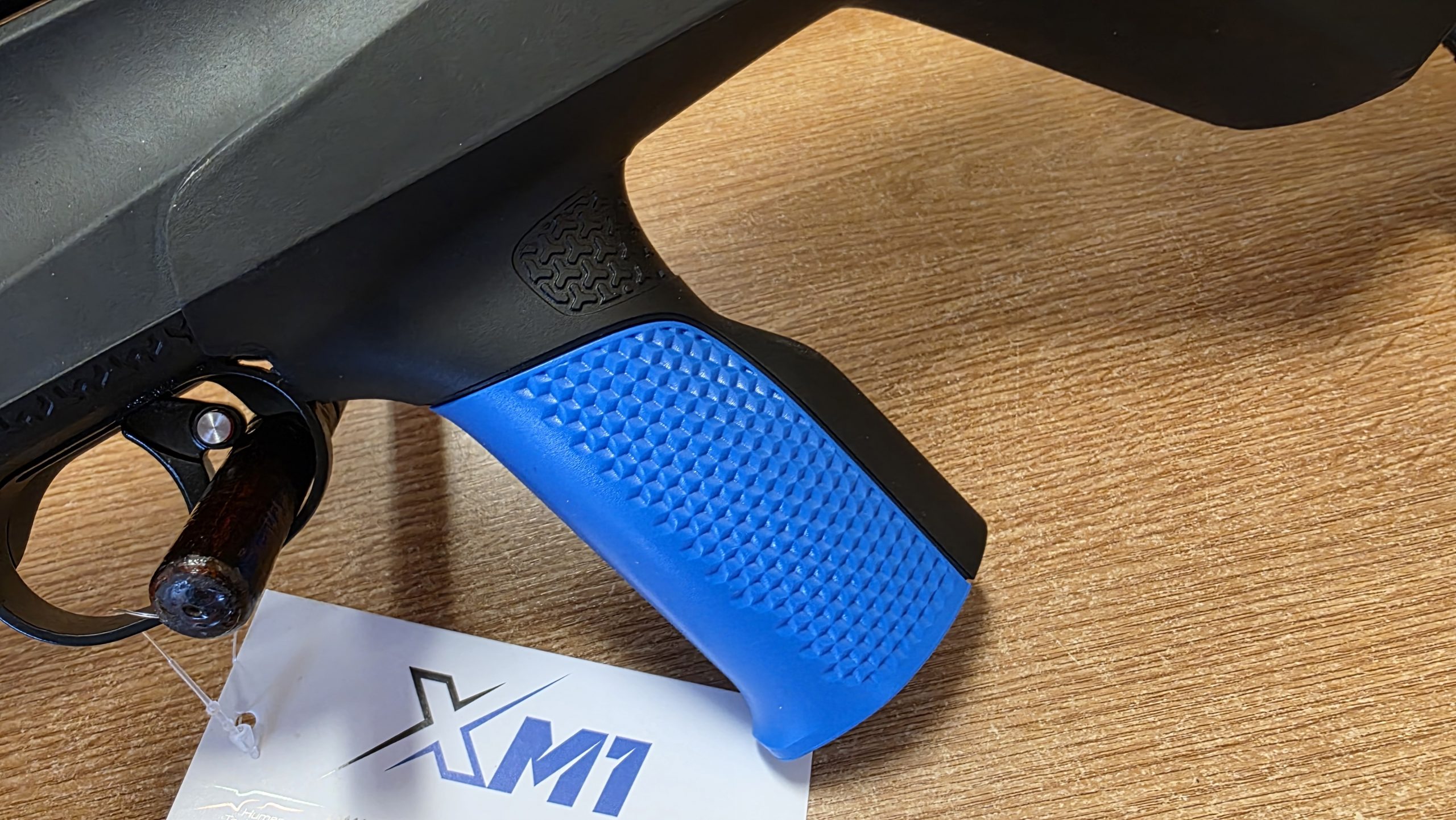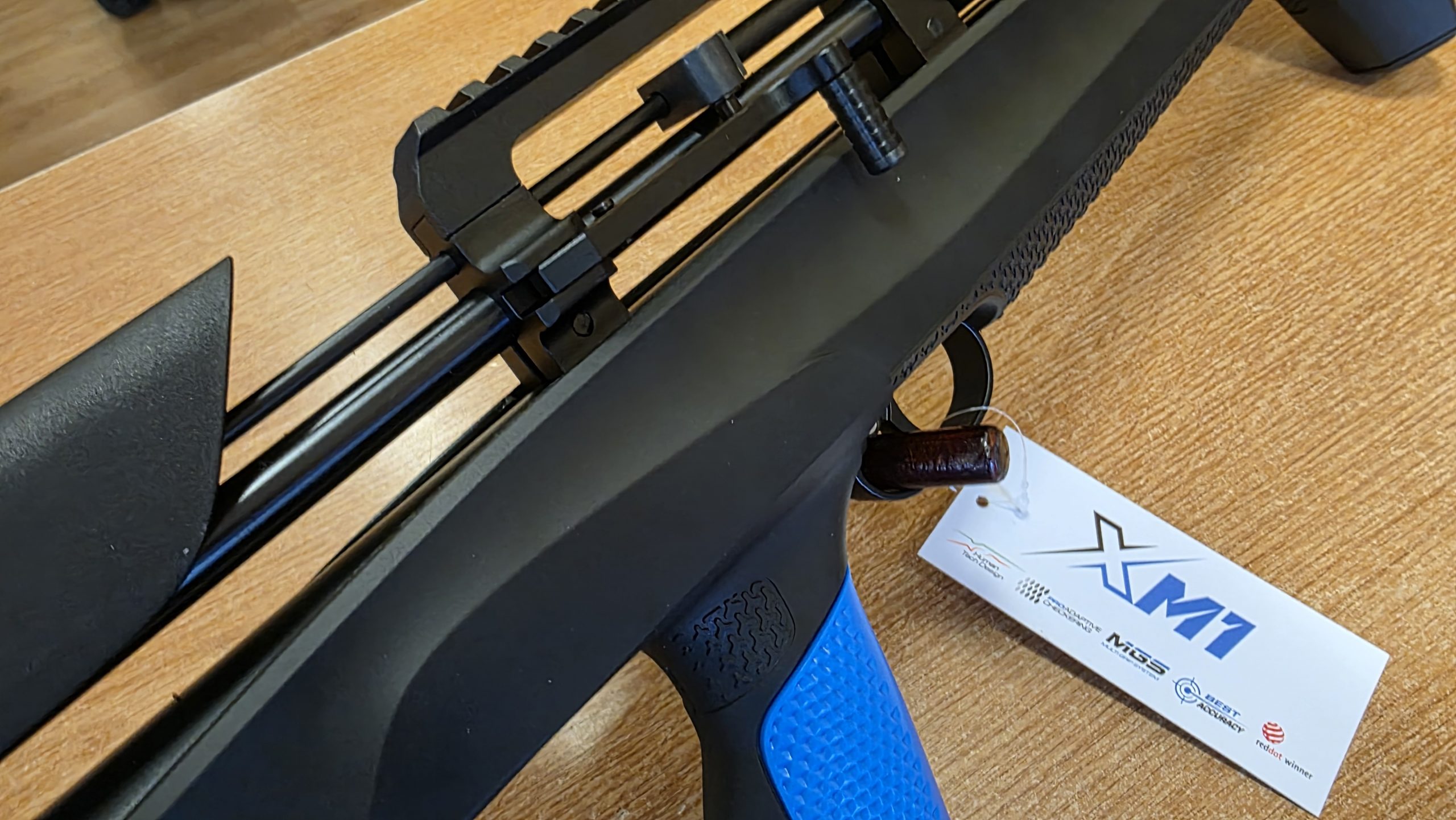 Bahan: Stok sintetik hitam, laras keluli biru