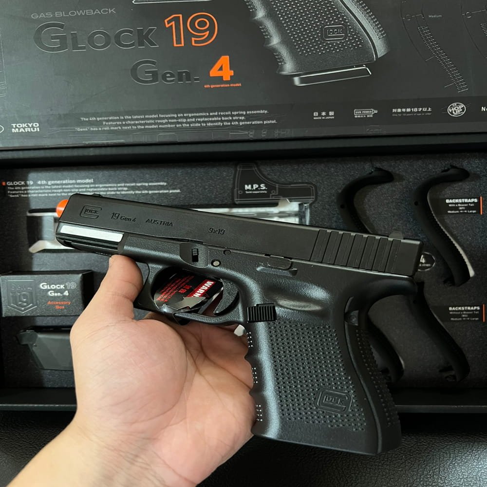 🔥 Tokyo Marui Glock 19 Gen 4 GBB Airsoft adalah pistol gas blowback compact yang ringan, presisi, dan realistis. Dibuat dengan material Aluminum Alloy & Fiber Polymer, pistol ini menawarkan keseimbangan antara durabilitas tinggi dan handling yang nyaman.